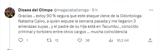 Casualmente, anoche, Maga denunció a través de su cuenta de twitter que fue atacada dentro de su propio vehículo, según su relato, la golpearon y se llevaron su celular.