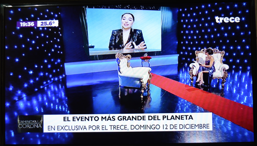 Hoy, a partir de las 19:00 hs, se expuso en las pantallas de canal 13, un programa especial al que denominaron “Camino a la Corona”, bajo la conducción de Lucía Sapena, a fin de apoyar la aventura de Nadia Ferreira en su búsqueda de la corona universal en el Miss Universo el próximo 12 de diciembre.