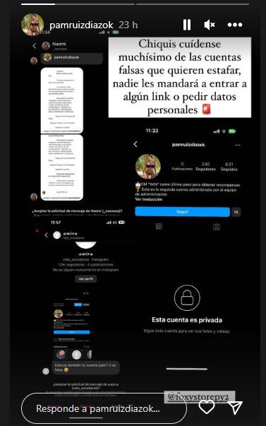 Una de las cosas que la modelo Pam Ruíz Díaz hace a través de las redes sociales es exponer marcas y sortear artículos entre sus seguidores, esto sirvió para que personas inescrupulosas empiecen a abrir perfiles falsos con el nombre de la modelo para engañar a los incautos.