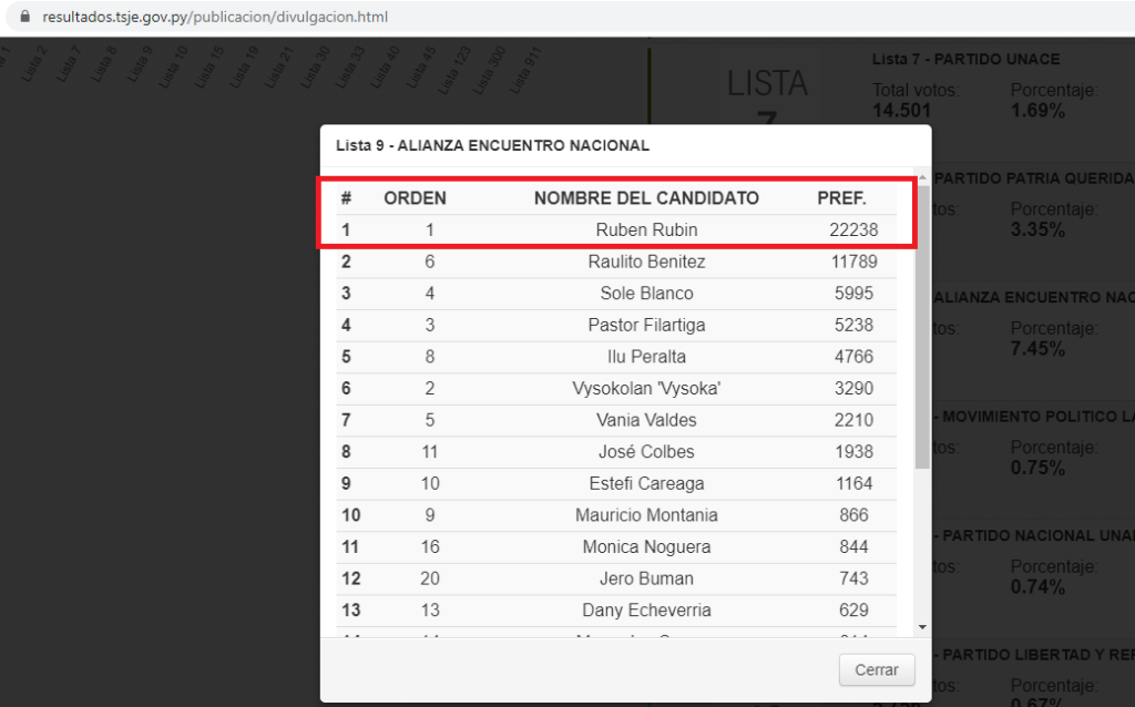 Rubín logró un total de 22238 votos y con este número se coloca en la lista de nuevos Diputados que legislarán el a Cámara baja hasta el 2028.