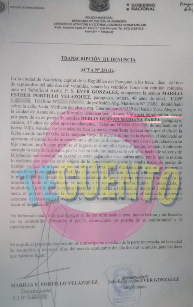 Ayer en horas de la noche, una mujer identificada como Marilia Portillo, llegó hasta la comisaría para formular denuncia penal en contra del Diputado Derlis Maidana.