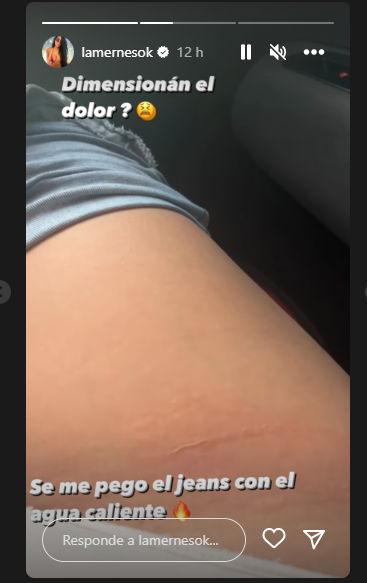 A la modelo se le volcó el termo y el agua caliente le terminó quemando la ingle provocándole una lesión casi en la zona púbica. La modelo compartió con sus seguidores esta mala experiencia de camino al campo.