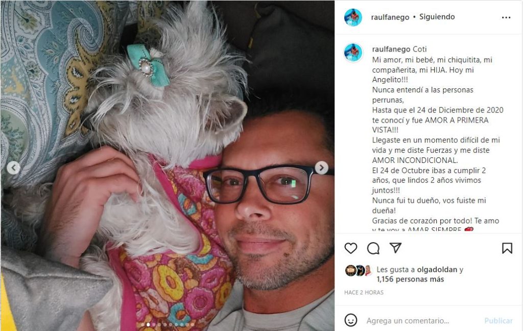 Raúl Fanego compartió esta tarde con todos sus seguidores que su adorable perrita Coti partió al cielo perruno.