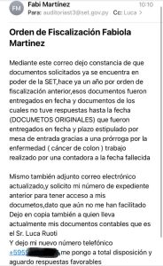Expuso mensajes que intercambió con la gente de la SET en donde le reiteraban que sus datos no estaban actualizados, pero de igual forma llegaron hasta su domicilio, situación que generó desconcierto en Fabi quien incluso solicitó un sumario administrativo.