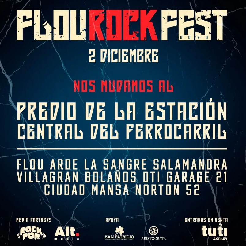 El pasado sábado 2 de diciembre se realizó el Flou Rock Fest 2023, un evento musical organizado por la banda nacional Flou, que reunió a exponentes de géneros como el rock, el pop rock y metal. El festival se llevó a cabo en el predio de la Estación Central de Ferrocarril (Ex La Cachamba), un lugar histórico y emblemático de la capital paraguaya.