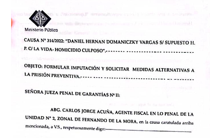 En el documento que presentaron ante el Ministerio Público bajo el patrocinio del abogado Alfredo Delgado, solicitaron la imputación del Dr. Daniel Domaniczky, quien había operado a Paola y fue en esa cirugía que ella perdió la vida, según los informes oficiales.