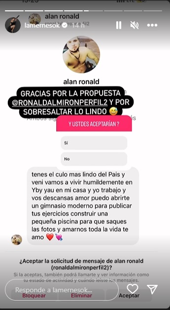 En ese contexto, recibió una curiosa invitación, pues un seguidor suyo le dijo que tiene “el cul* más lindo del país” y la invitó “a vivir humildemente en Yby Ya’u”.