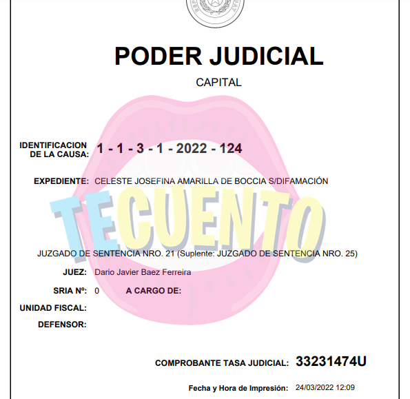 La causa fue a parar a manos del Juez Darío Javier Báez Ferreira quien deberá convocar a las partes a una audiencia de conciliación.