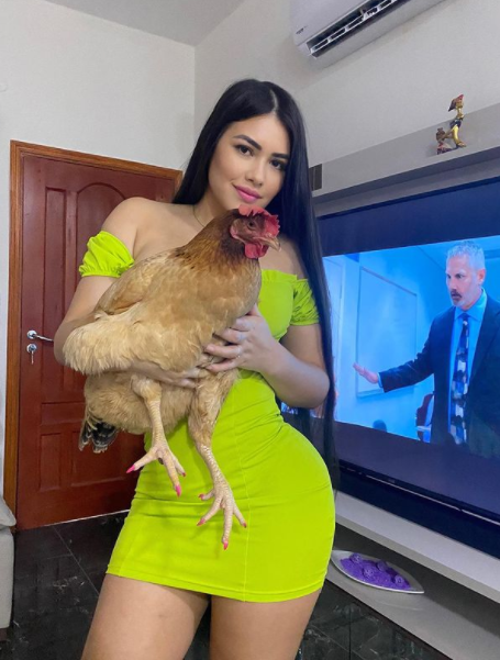 Hortensia es la gallina que Laurys Diva tiene como mascota, pero la mediática no la trata como a una gallina ordinaria, sino que la tiene como una hija.