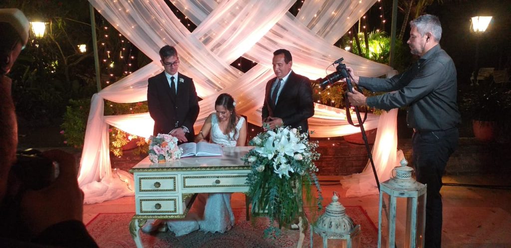 Como testigos de la boda ante el juez, estuvieron, la fiscal General del Estado; Sandra Quiñonez y los amigos más cercanos de la pareja, además, impregnó su huella en el libro de testigos, el “perrhijo” de Claudia, Gerónimo, un can de la raza Beagle, quien también lució un traje negro para acompañar a su madre humana en este día tan importante.