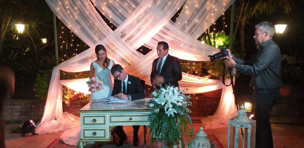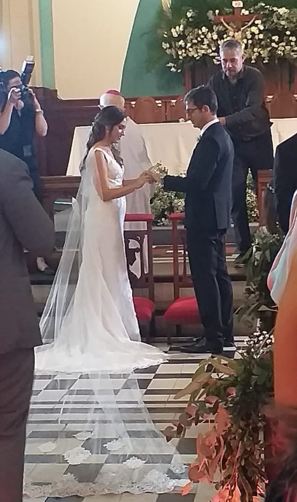 Ayer, sábado 30 de abril, en la iglesia San José de Asunción, a bordo de un Mercedes Benz decorado con rosas naranjas y amarillas, llegaba la periodista Claudia Aguilera para unirse en matrimonio al fiscal Marcelo Pecci. La novia lució un vestido creado por el Negro Vázquez, mientras que el novio fue visto en un sobrio y elegante traje negro.