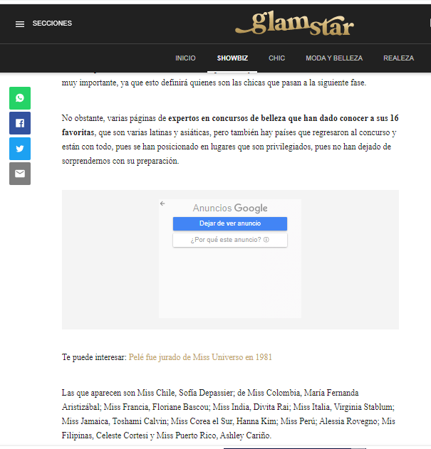 Según una publicación hecha en el portal GlamStar.news señala que los expertos se inclinan hacia “Miss Chile”, “Miss Francia”, “Miss Jamaica”, “Miss Filipinas”, “Mis Puerto Rico” y “Miss Colombia”. La lista sigue con “Miss India”, “Miss Perú”, “Miss Corea del Sur” y “Miss Italia”, dejando de lado a nuestra compatriota, Leah Ashmore.