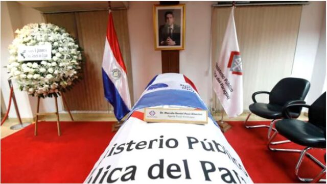 Posteriormente los restos del fiscal, fue trasladado a Luque, acompañado de una extensa fila de vehículos que lo escoltaron hasta el Centro de Entrenamiento del Ministerio Publico, donde sus colegas fiscales, directores, y otros funcionarios le rindieron un homenaje póstumo.