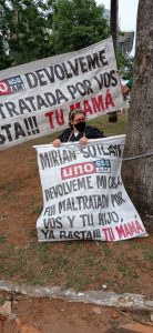 Sentada en su silla de ruedas portando un cartel que decía “Mirian devuélveme mi casa” accedió a conversar con Te Cuento y relató lo que sucedió con su hija.