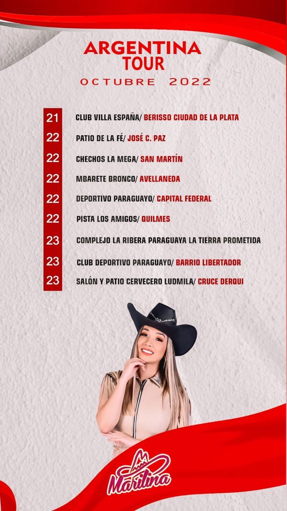 A través de su cuenta de instagram, Marilina publico que ya tiene agendadas las fechas de shows para el mes de octubre en el vecino país, en total son 9 las fechas que tiene para la realización de su “Tour Argentina 2022” entre las ciudades que visitará se pueden citar; la ciudad de La Plata, San Martín, Avellaneda, Capital Federal, Quilmes y Barrio Libertador.