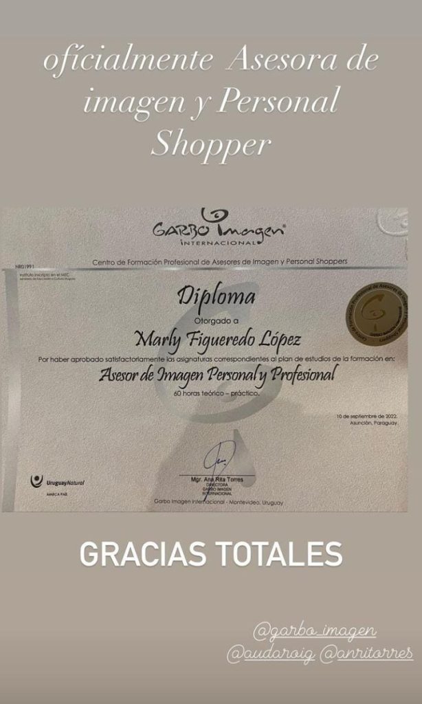 El fin de semana, Marly Figueredo participó de un curso en donde obtuvo la certificación como asesora de imagen. Conversamos con ella y nos contó que este es el cuarto logro que consigue ya que se estuvo formando en varias ramas similares.