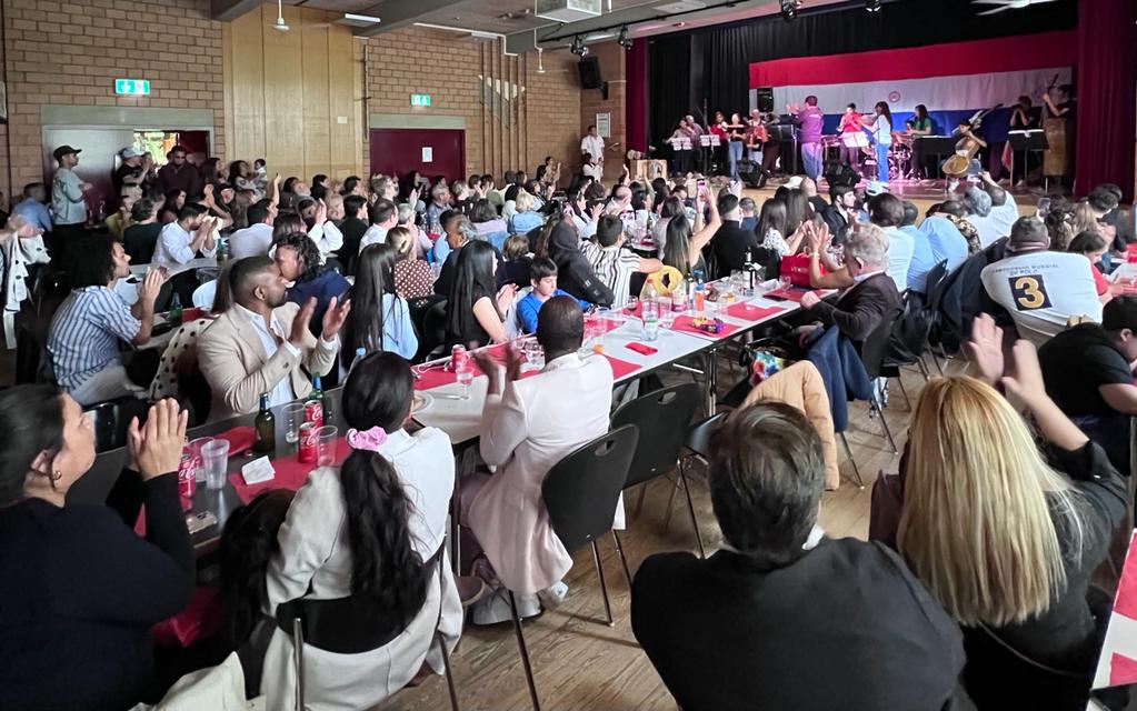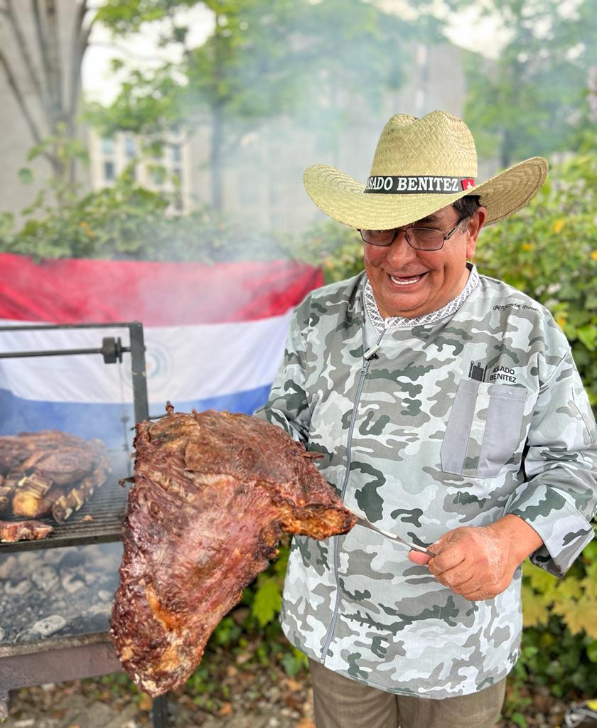 Los residentes Paraguayos se hicieron presentes para disfrutar del Asado Paraguayo de manos exclusivas del Embajador de la Gastronomía Paraguaya Benjamín Benítez y su equipo de parrilleros quienes vienen recorriendo ya semanas países como Bélgica y España en encuentros gastronómicos. En esta oportunidad se sirvió a más de 380 personas en la velada festiva.