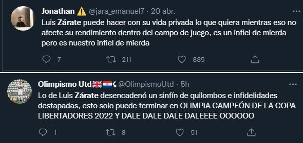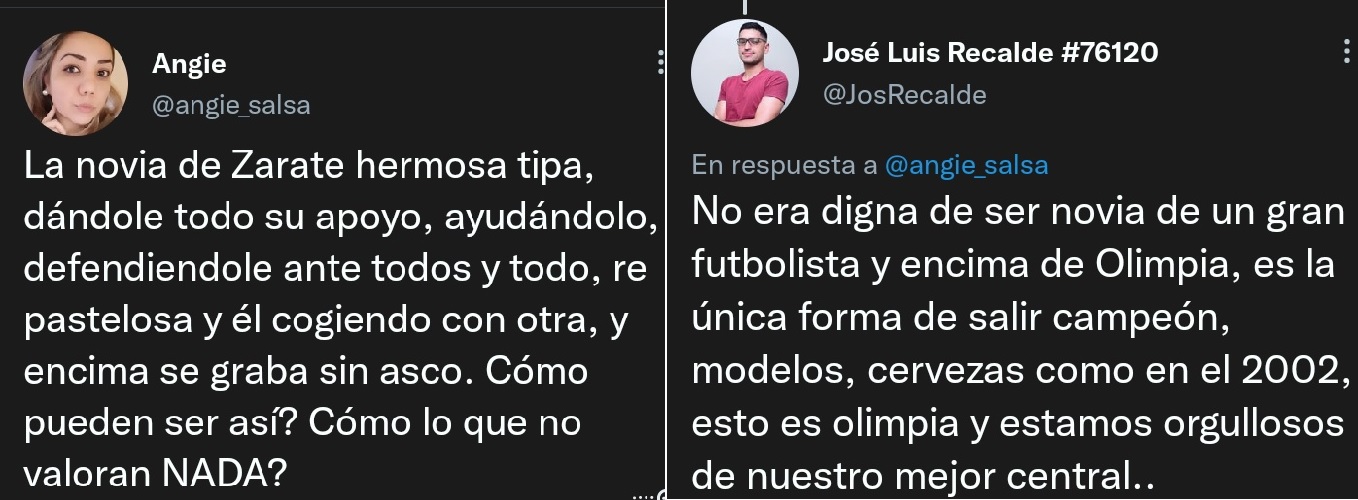 En la red social twitter sigue el debate sobre si el futbolista del Olimpia, Luís Zárate le fue infiel o no a su novia Belén María, luego de que la modelo Lili Figueredo en comunicación con el programa ´Aire de todos´ emitido por el canal GEN confirmara que son ambos los protagonistas del material.