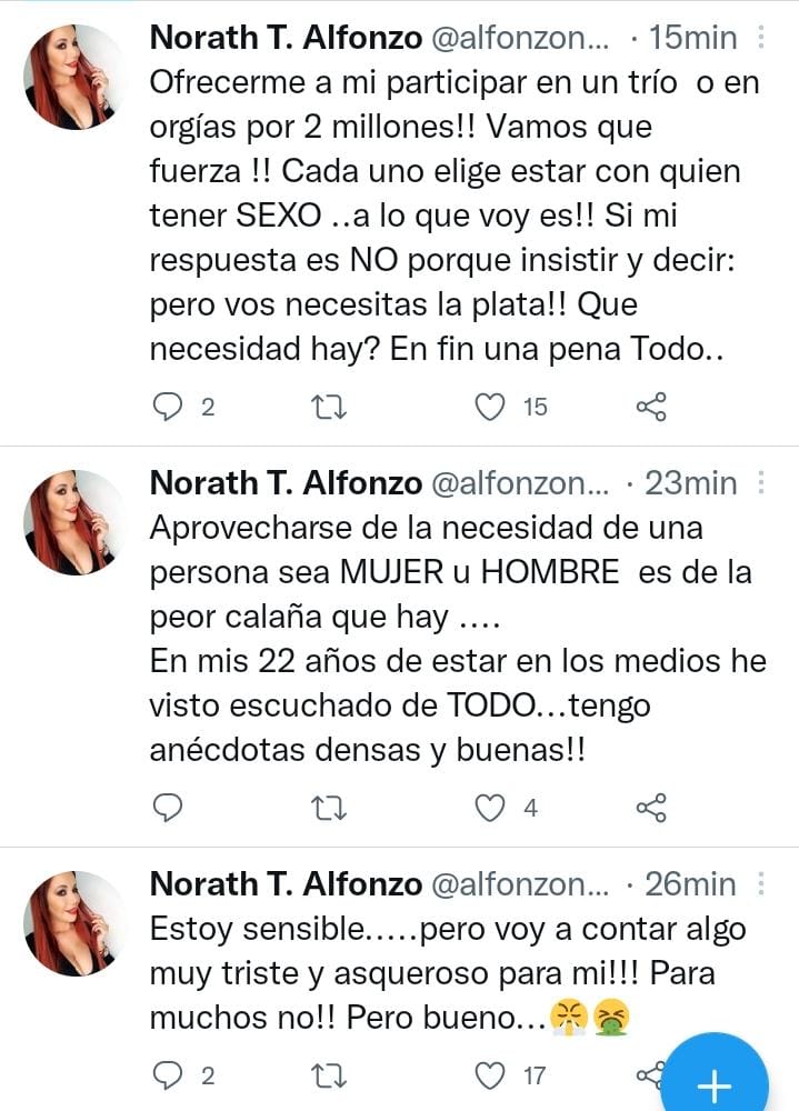 Norath aseguró que esta propuesta le pareció asquerosa y le dejó triste.