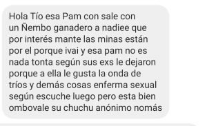 Fredy Vera, más conocido como El Churero, compartió un mensaje que le enviaron sus seguidores en donde decían que la modelo Pam Ruíz Díaz es “adicta al sexo” y que “le gusta hacer tríos”.