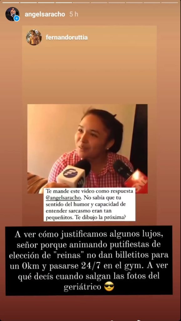 Todo empezó cuando Ángel publicó el rumor de que Ruttia estaría recibiendo favores económicos de parte de un sugar daddy (amante mayor y millonario) y por eso lleva una vida de lujos.