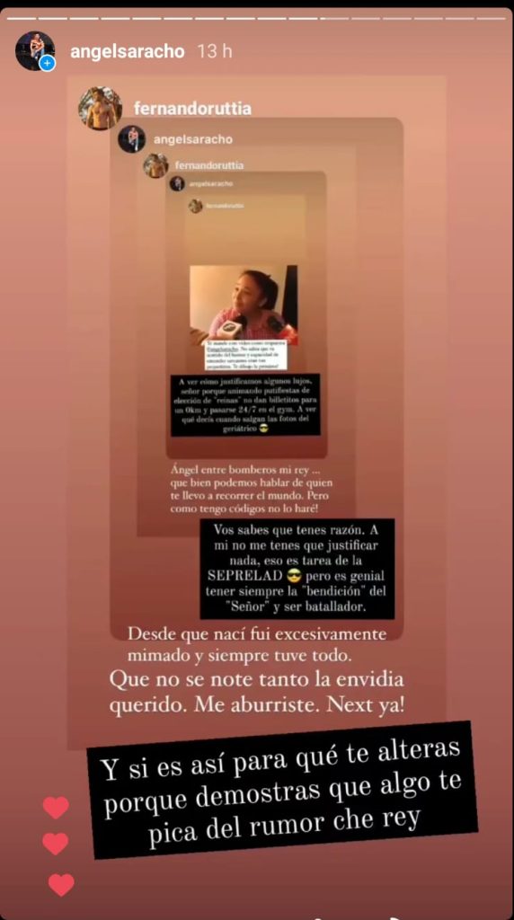 Todo empezó cuando Ángel publicó el rumor de que Ruttia estaría recibiendo favores económicos de parte de un sugar daddy (amante mayor y millonario) y por eso lleva una vida de lujos.