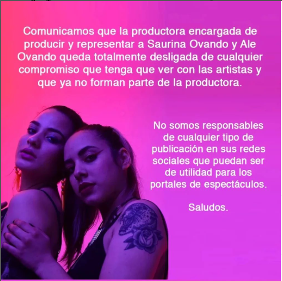 En el comunicado oficial anunció la desvinculación de las Ovando de su productora, pero no aclaró el motivo del desmembramiento del equipo.