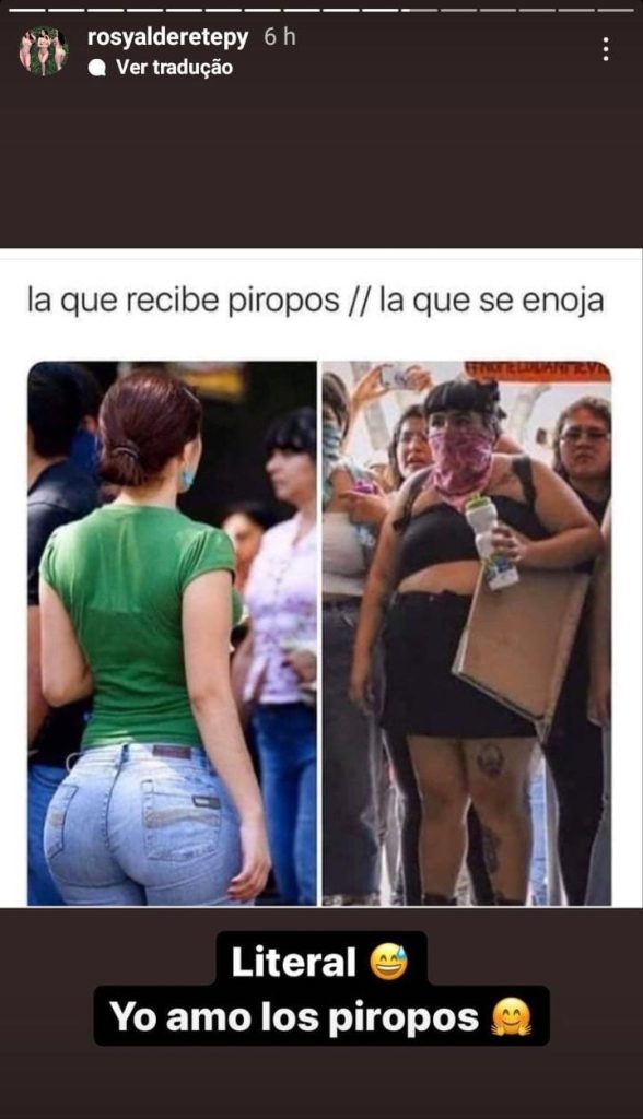 Rosy Alderete compartió un llamativo meme en sus redes sociales, la imagen hace alusión a los piropos, y expone un paralelismo sobre quienes son las mujeres que lo reciben y quienes son las que se indignan en referencia a las mujeres que abrazan el feminismo radical.