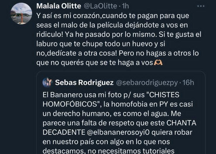 Hace un par de días publicábamos que Sebas Rodríguez fue blanco de las burlas y los chistes homofóbicos de El Bananero, el youtuber que estuvo el fin de semana pasado en nuestro país, esto generó todo tipo de comentarios, hasta Malala Olitte le dio consejos a Sebas a través del twitter.