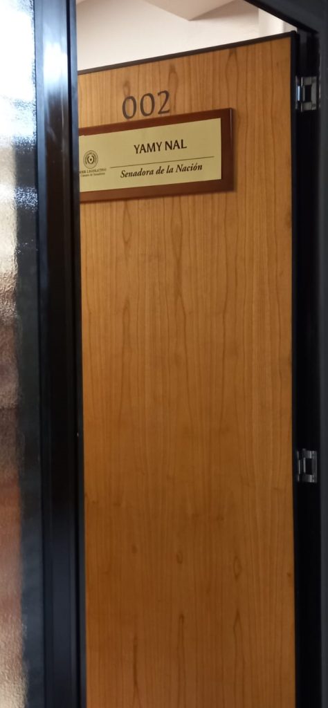 Lo cierto y lo concreto es que la senadora Norma Aquino, no quiere que la llamen por su nombre, hasta su puerta y placa en la Cámara Alta, fue grabada con su apodo.