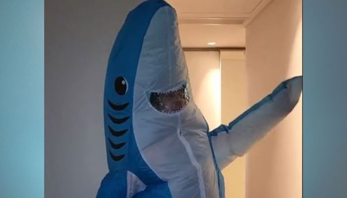 Sol Cartes publico en su cuenta de Tik Tok un video en donde se puede ver disfrazado a su marido Patrick Bendlin con un traje de “Tiburón”