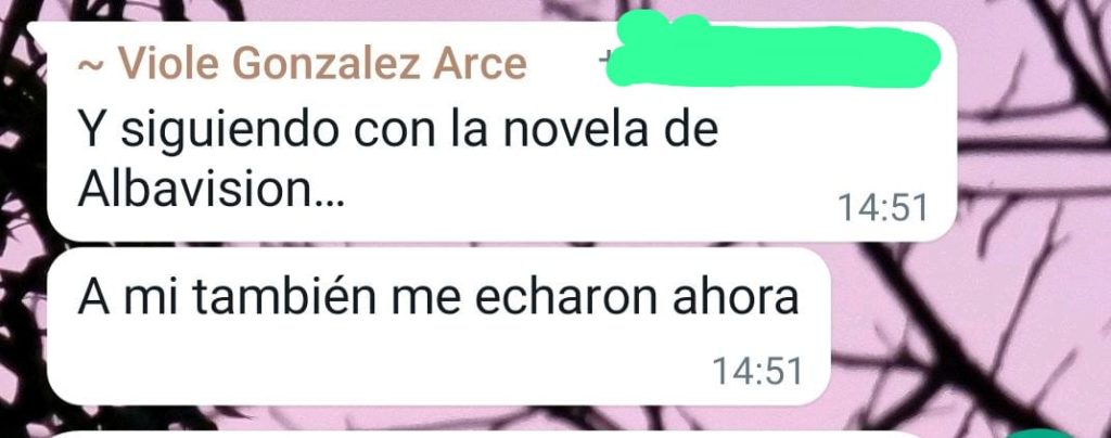 La misma no ha salido a dar declaraciones públicamente, pero a esta redacción llegó un chat en donde la propia Violeta habría confirma su desvinculación del grupo Albavisión.