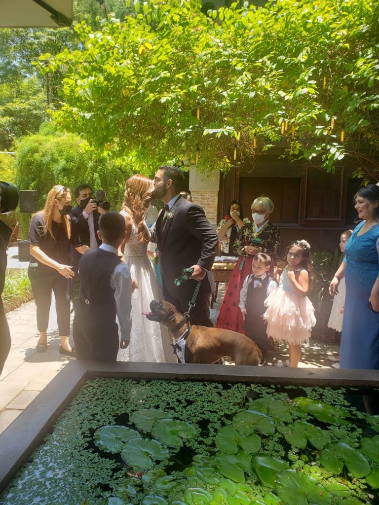 Tampoco faltaron los hijos de la pareja, y el perro de la familia Vera-Park, perfectamente vestido para la ocasión.